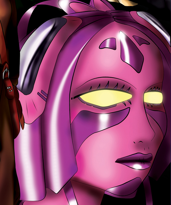 Did you kill him?’ She whispered to the tall droid as he freed her from the shackles.