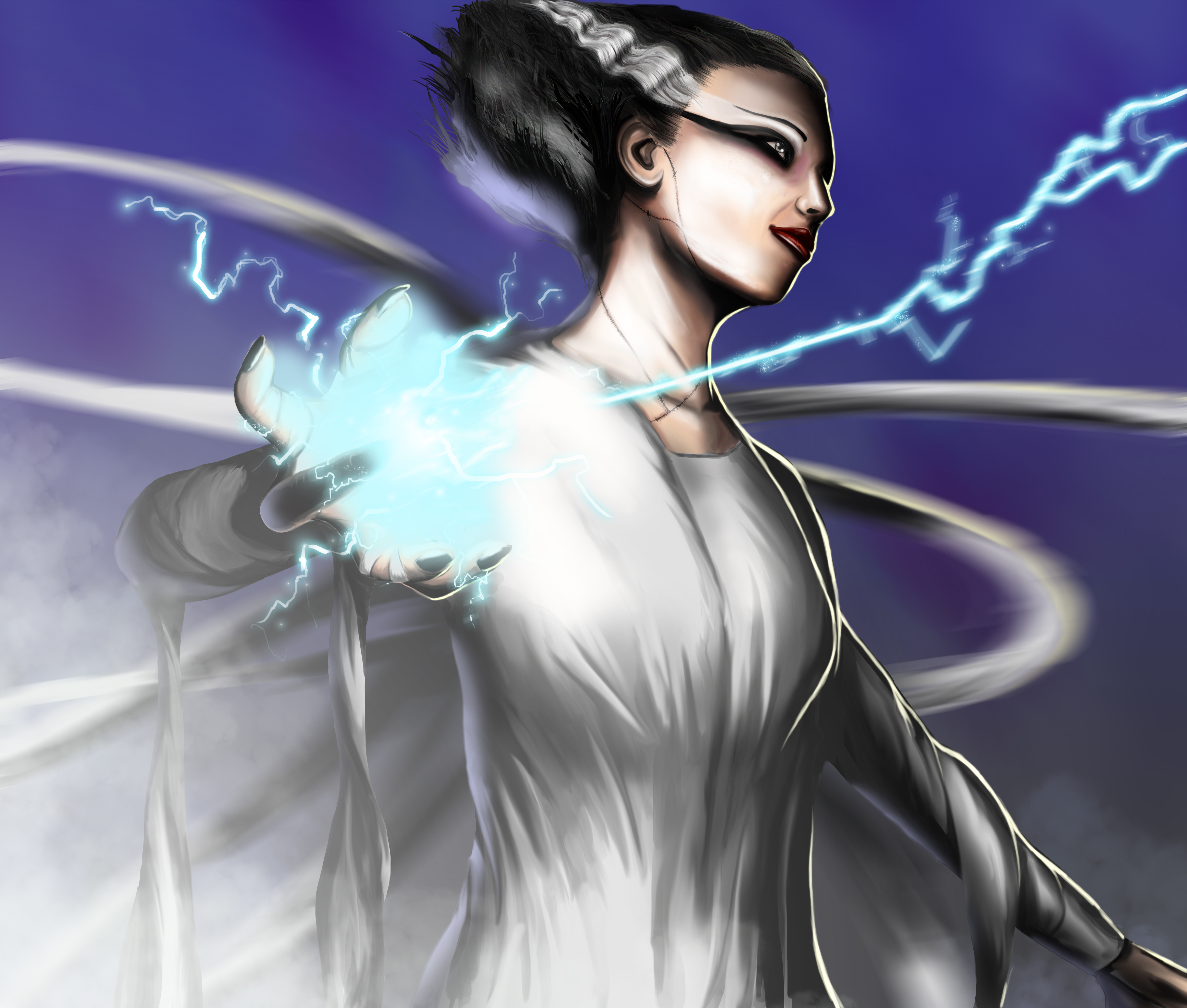 Here we see Ella reluctantly heading up towards the Red Saviour. Originally I just envisioned the suit being a tight fighting red ensemble. But during painting I decided she should have ‘chakra’ style orbs down her back. Obviously I missed out the red base chakra, otherwise sitting might be quite uncomfatable π